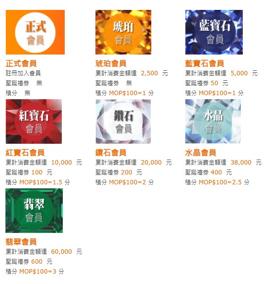 由2018年3月9日開始,在新會籍制度下,會員可享聖誕禮券及積分優惠。